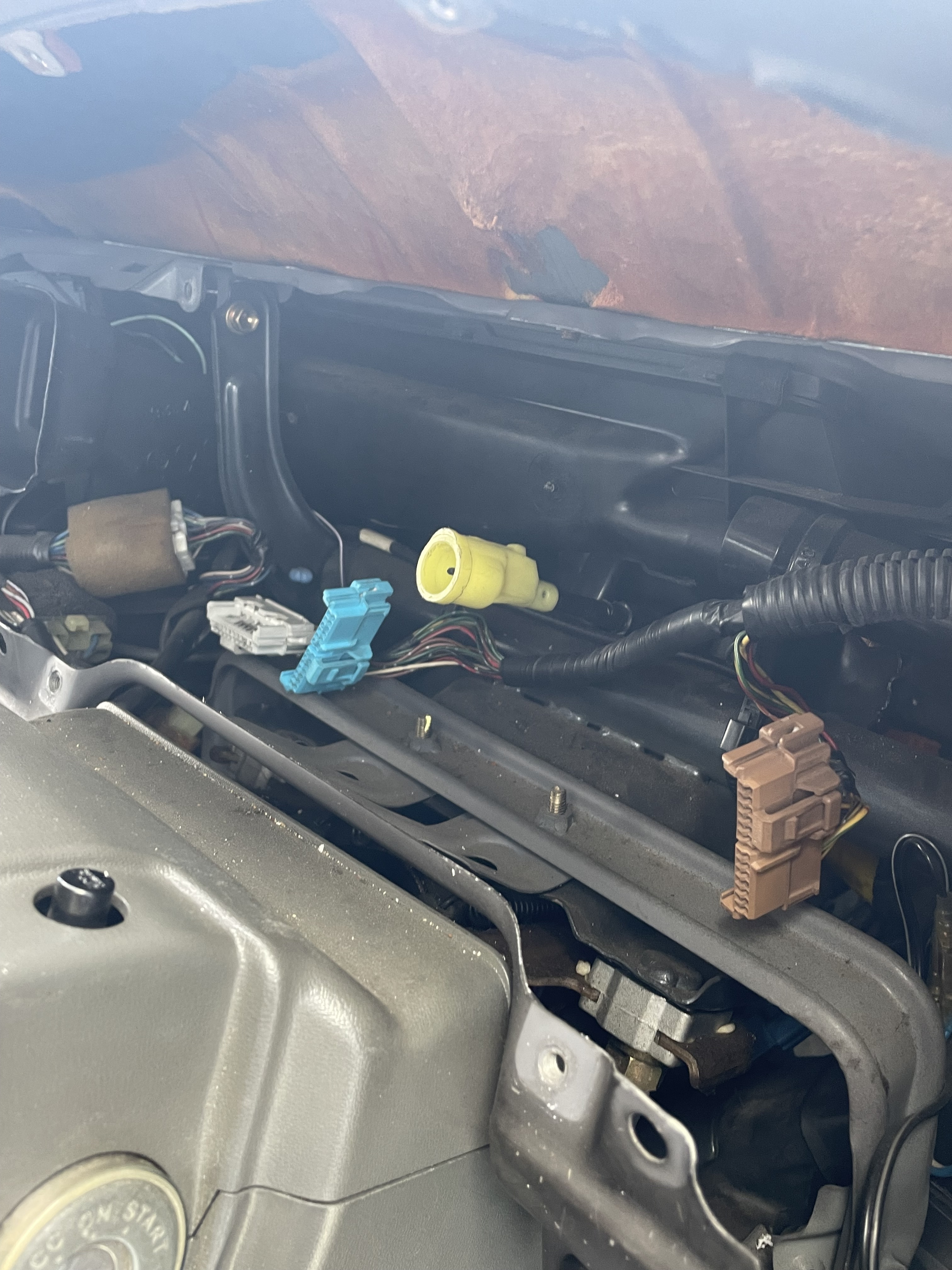 カプラーの中でも真ん中に接続されている黄色の大きなケーブルが今回交換するメーターケーブルになります。