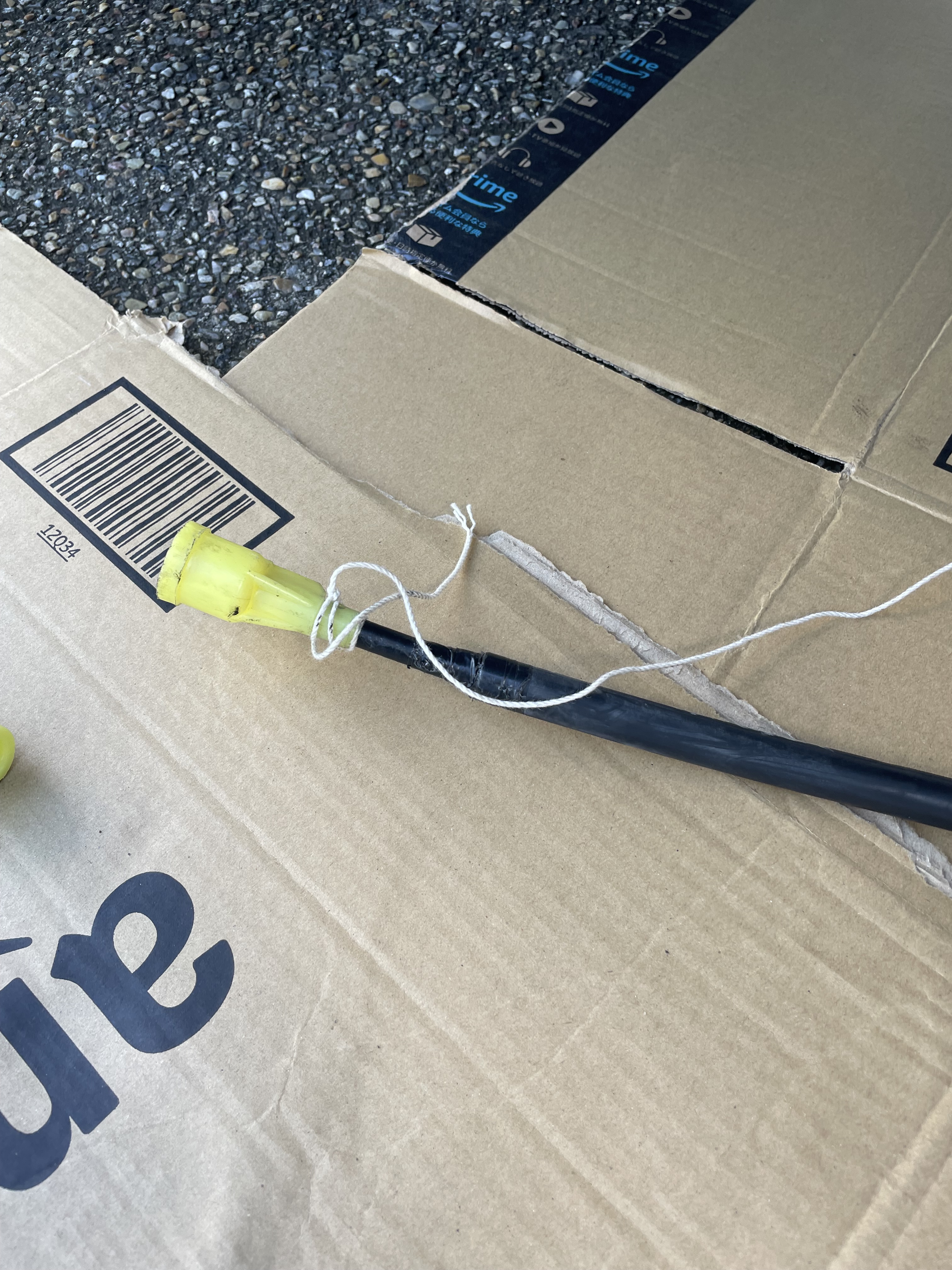 まずは先ほど引き抜く際に壊れたケーブルの先端に結んでいたたこ紐を新しいケーブルの先端に取れないように強めに結びます。