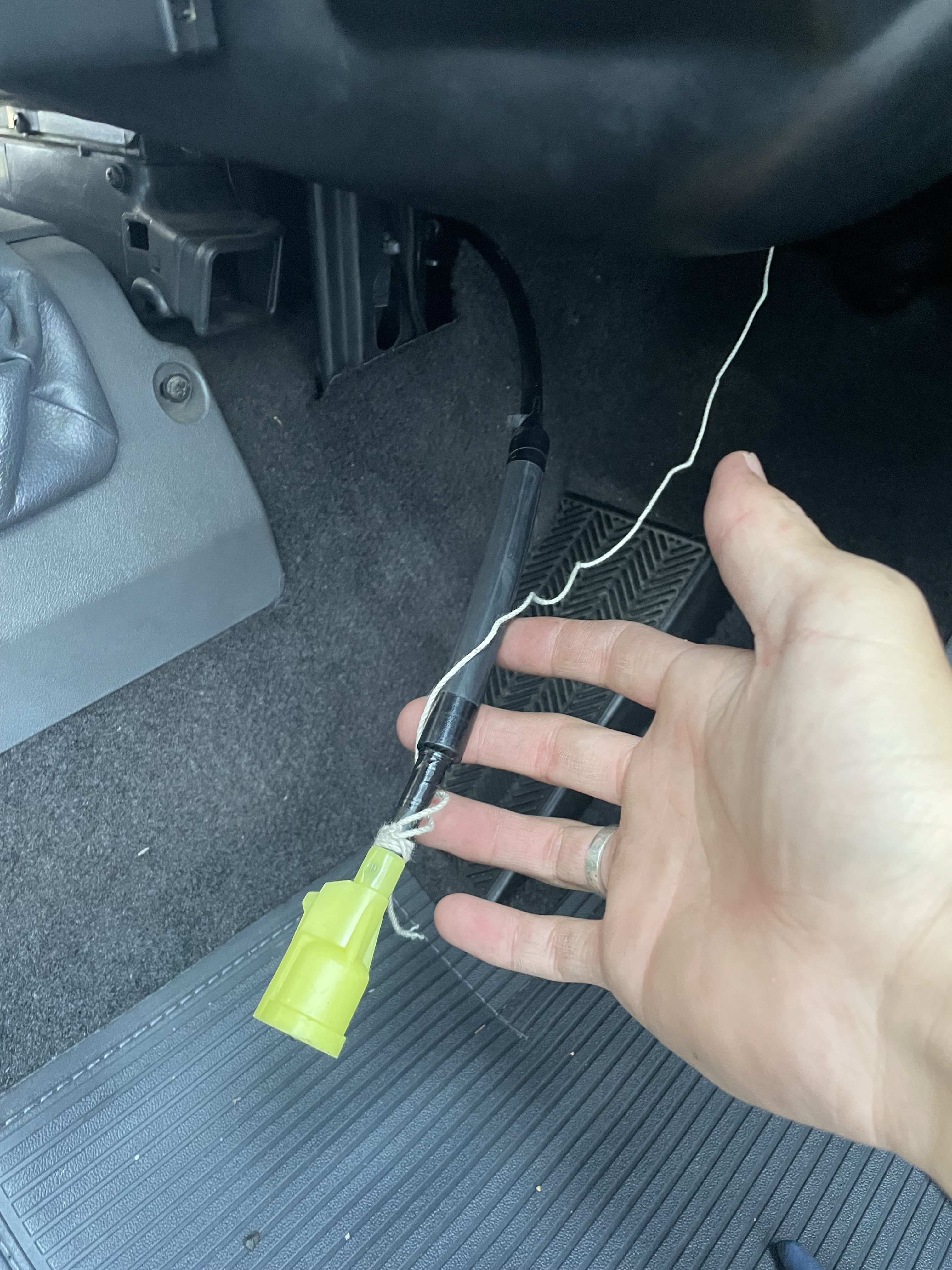 引き抜く前にケーブルの頭の部分に写真のようにたこ紐を結んでおきます。(なぜたこ紐を結ぶかは後で説明します)