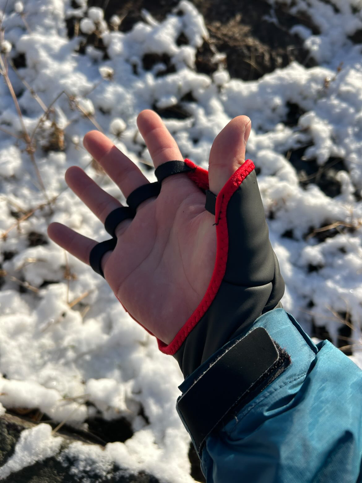 一見寒いように見えますが手の甲と手首が守られているので真冬でも全然寒くないです。手袋をすると感度が極端に落ちるというデメリットを気にせず釣りができる画期的な手袋になります。