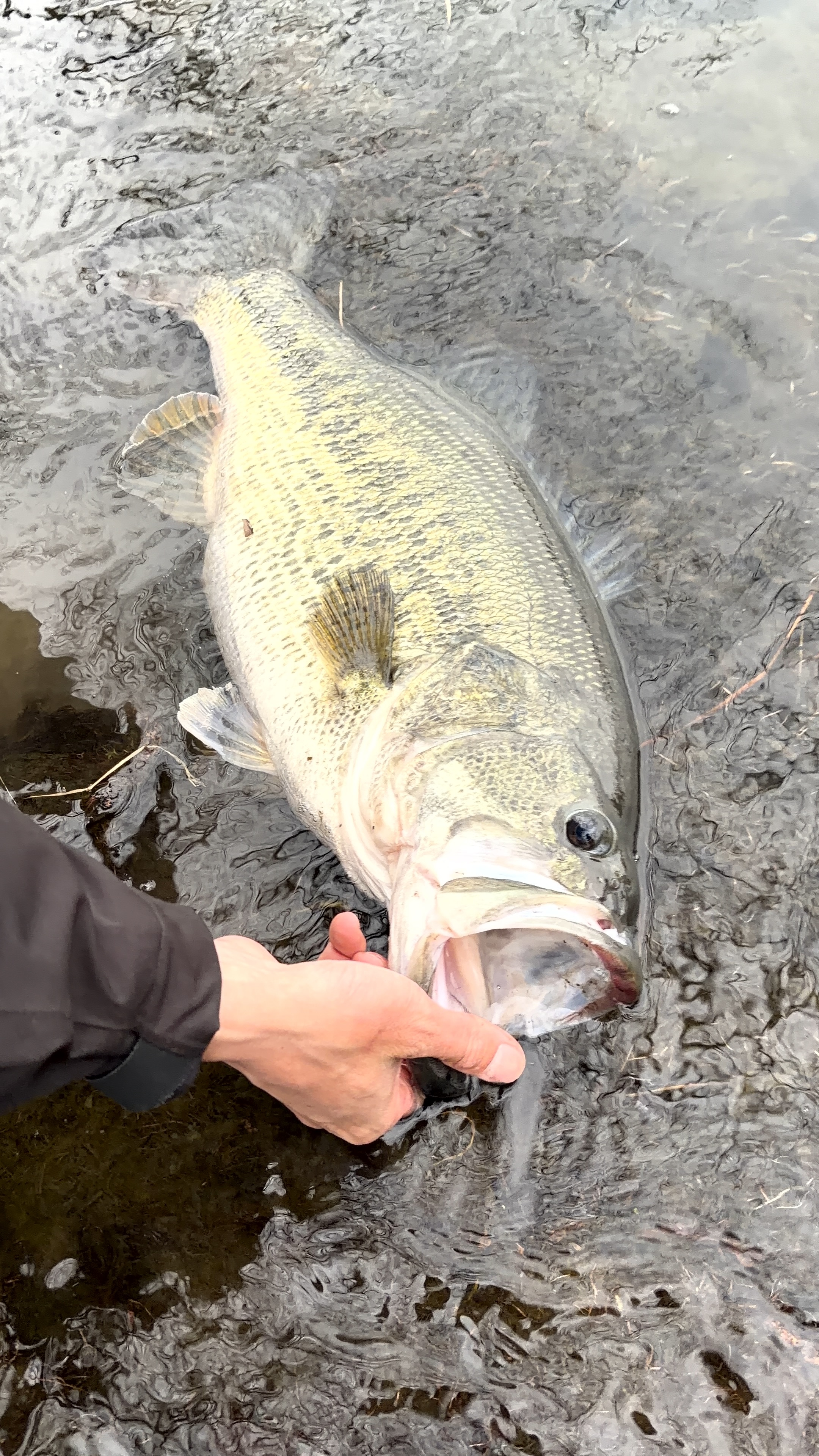 初手で入ったポイントで少しカレントの効いたカバーを攻めてもらうと朝イチいきなりバケモン登場