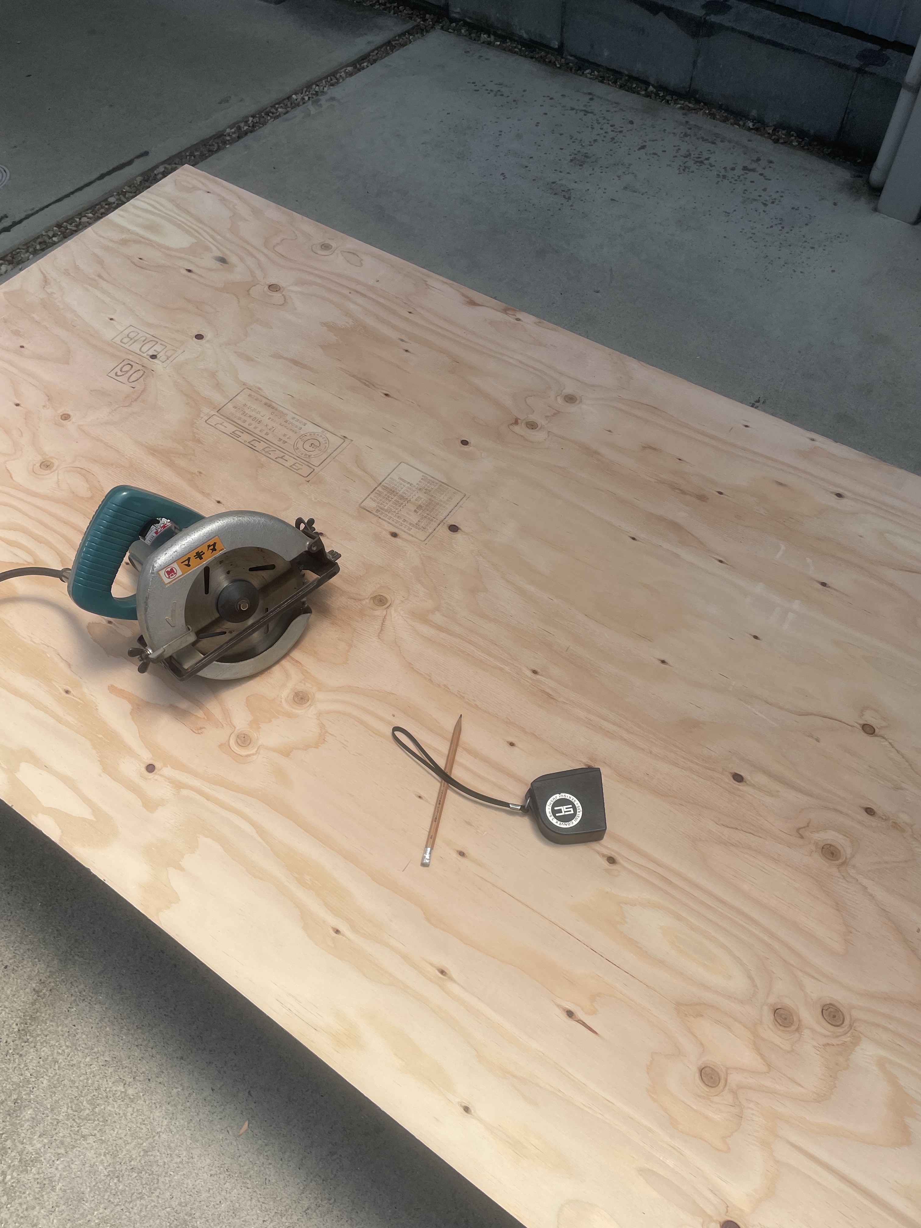 次にパイプの土台の上にセットする板をカットしていきます。
