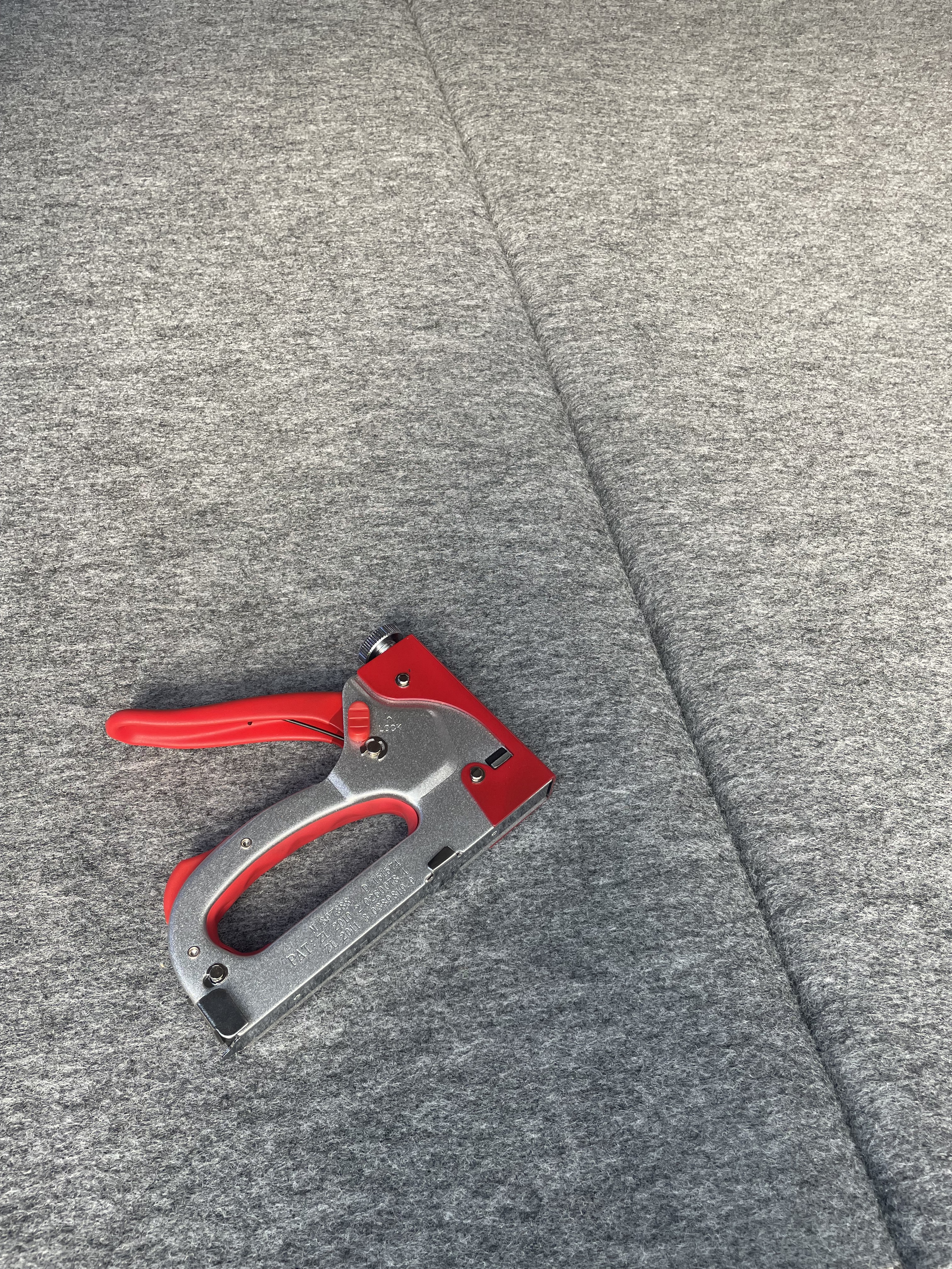 最後はカーペットをタッカーで貼り付けていきます。